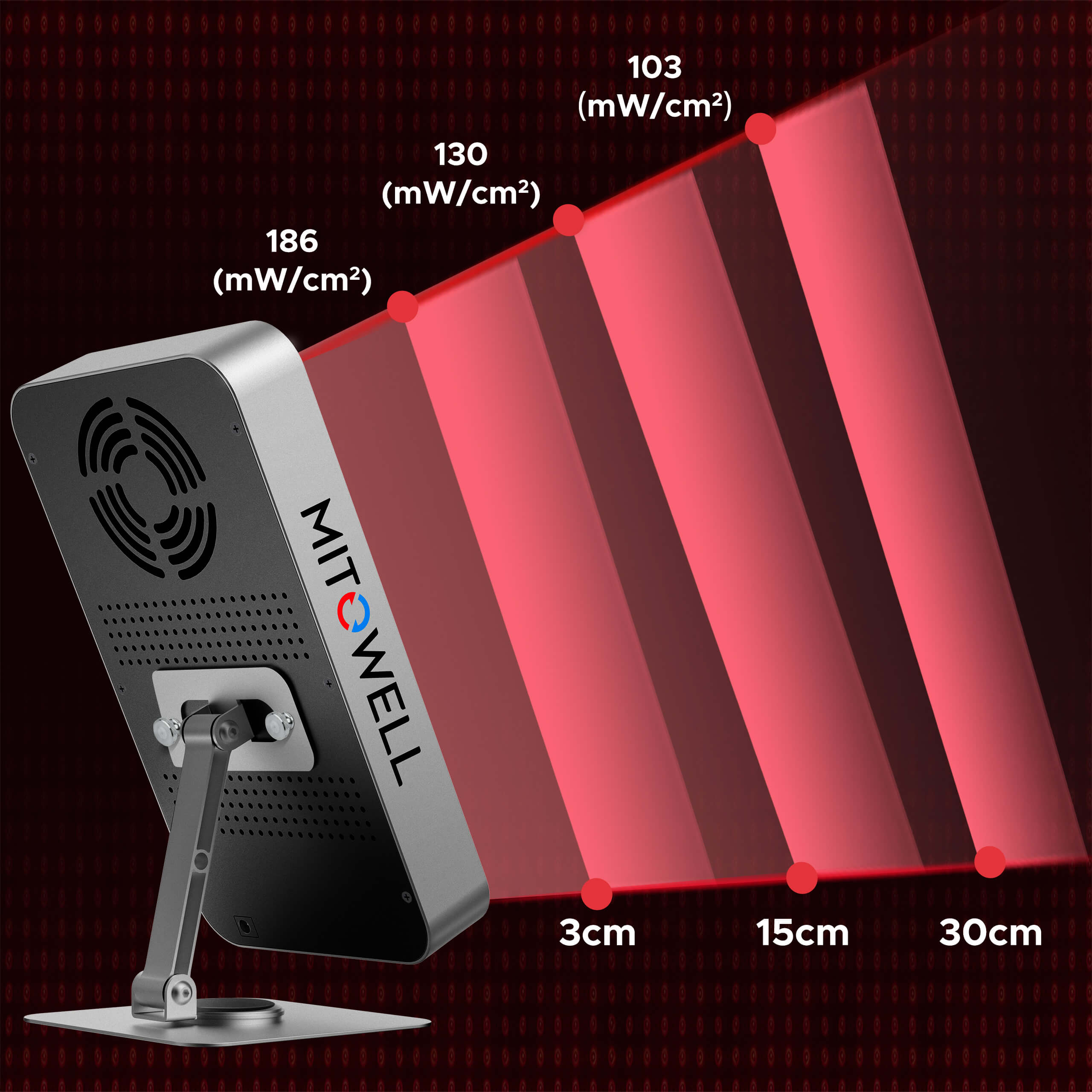 Moc światła ma kluczowe znaczenie w terapii. Nasze lampy utrzymują optymalną efektywność nawet przy większych odległościach, co potwierdzają dokładne pomiary natężenia. Dzięki zaawansowanej optyce i precyzyjnie dobranym parametrom, możesz być pewny, że otrzymujesz dokładnie taką dawkę światła, jakiej potrzebuje Twój organizm: