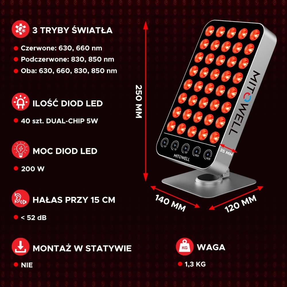 - 4 długości fal: 630, 660, 830, 850 nm